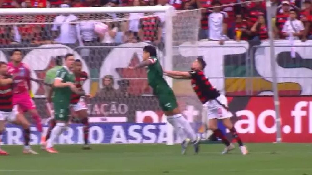 "Quem busca é o jogador de verde (Fuchs) o de vermelho", afirmou um dos auxiliares. "Ele vai desviar ou vai parar? Ele (Pedro) para e tem o contato", corroborou Caio Max. O VAR também entendeu que uma possível infração de Danilo sobre Vitor Roque ocorre antes do início da jogada de ataque e, portanto, não deve ser revista.