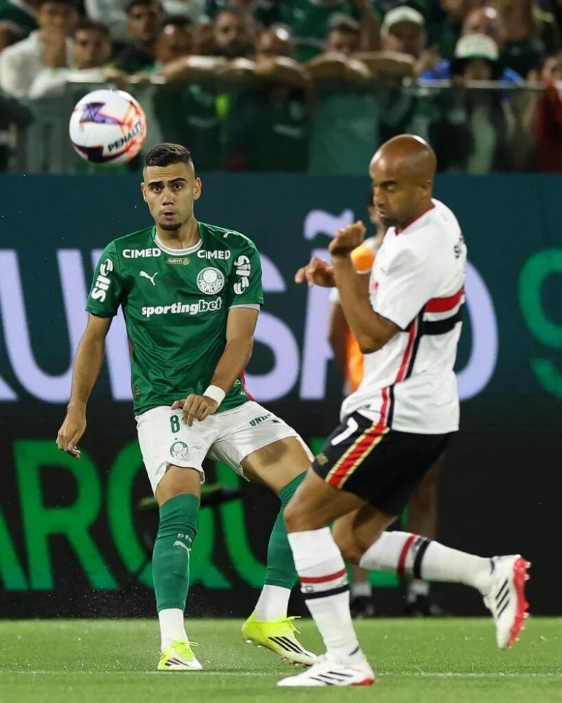 O jogo começou estudado, com o Palmeiras tendo a posse de bola. Pressionando o São Paulo no ataque, o Verdão abriu o placar aos sete minutos do primeiro tempo. Marlon Freitas recuperou a bola e acionou Flaco López, que abriu na esquerda com Vitor Roque. O camisa 9 foi para cima, Lucas Ramon afastou mal, e o atacante conseguiu se manter na jogada para acionar Mauricio. O meia aproveitou e bateu para o fundo do gol.