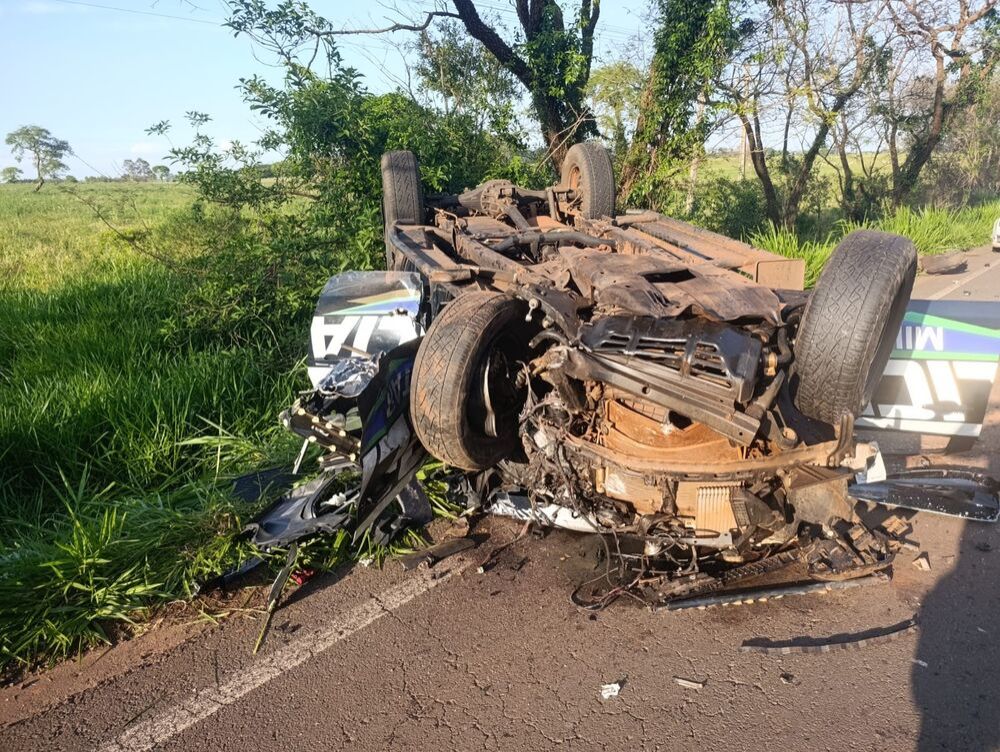 Durante o trajeto, ao tentar uma ultrapassagem, a viatura bateu lateralmente em uma carreta que vinha no sentido contrário e acabou capotando.