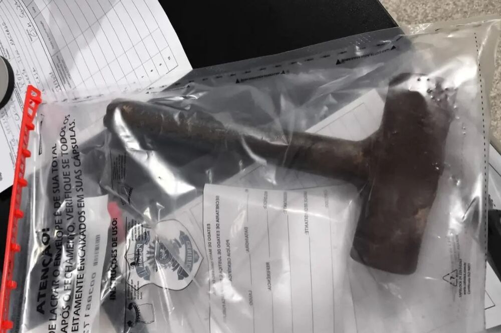Testemunhas atenderam ao pedido de ajuda e entraram na casa. Chegaram no exato momento em que o militar golpeava a esposa com um martelo.