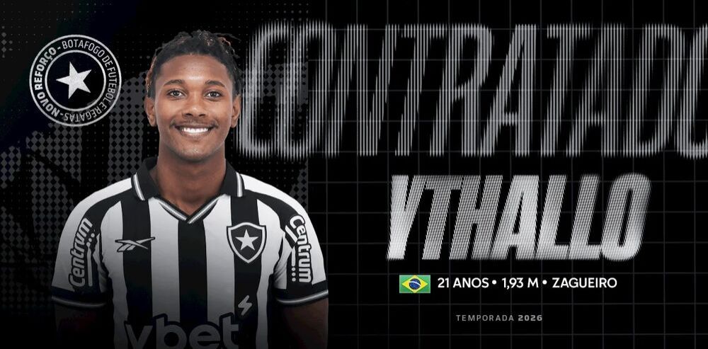 O Botafogo anunciou nesta segunda-feira a chegada do zagueiro Ythallo, de 21 anos. Ele assinou contrato com o time carioca até o final de 2027.