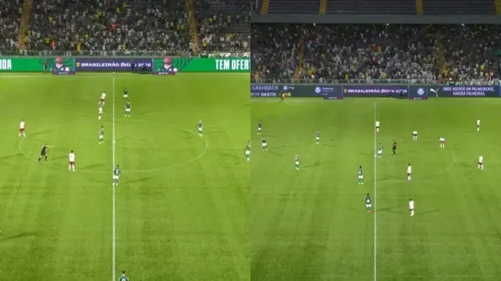 Em Palmeiras x Fluminense, ontem, pela 4ª rodada do Campeonato Brasileiro, ao reiniciar a partida no segundo tempo, o árbitro Felipe Fernandes de Lima (MG) deu novamente a saída de bola para o time paulista.
