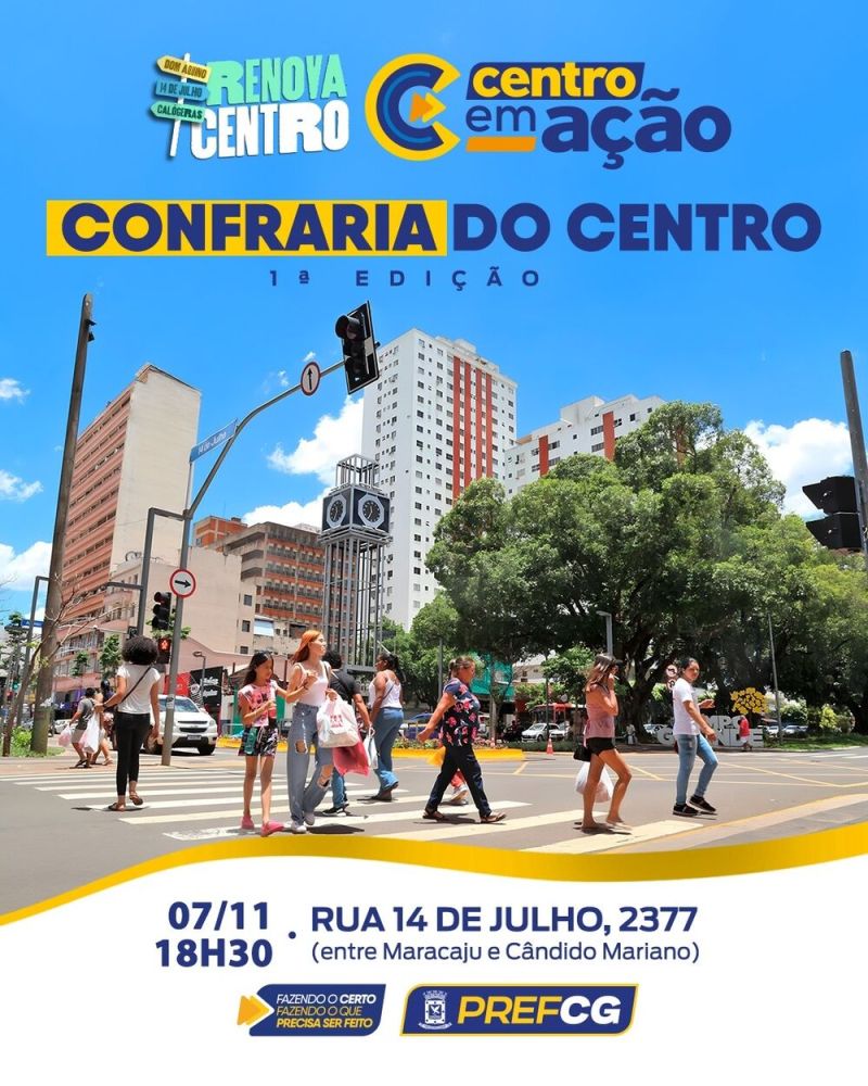 A Prefeitura de Campo Grande, por meio da Semades (Secretaria Municipal de Meio Ambiente, Gestão Urbana e Desenvolvimento Econômico, Turístico e Sustentável), realiza nesta sexta-feira (7) a primeira edição da Confraria do Centro, iniciativa que integra o projeto Centro em Ação.