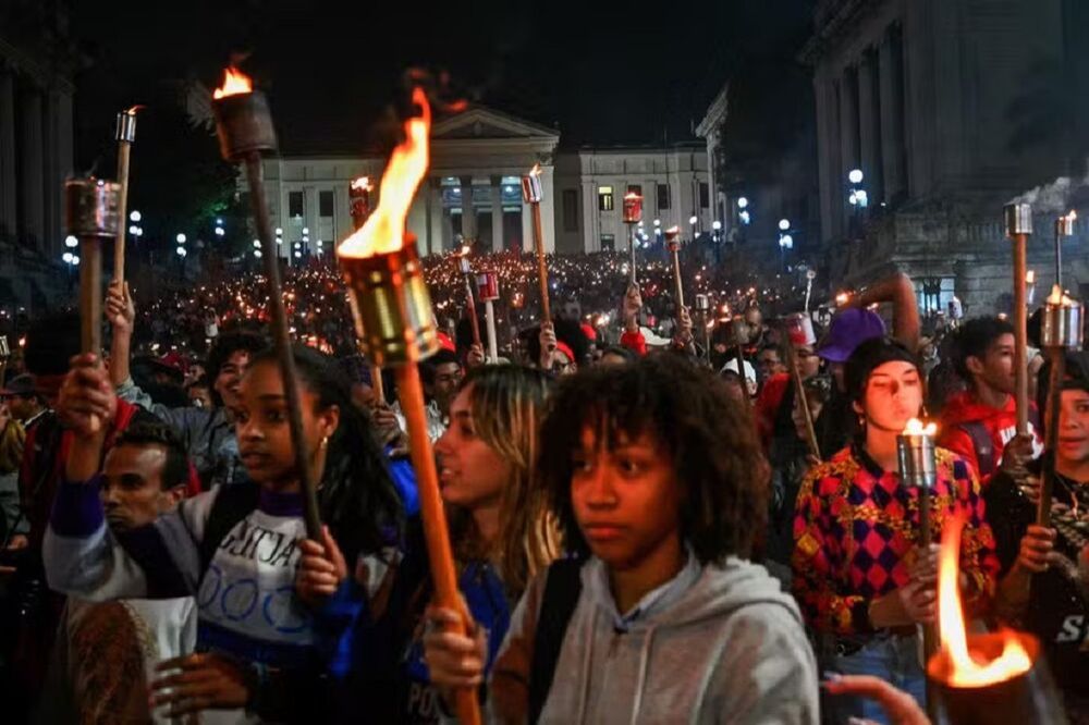Milhares de cubanos, em sua maioria jovens, marcharam em Havana na noite dessa terça-feira para protestar contra as ameaças dos EUA contra a ilha caribenha, durante a tradicional "marcha das tochas".