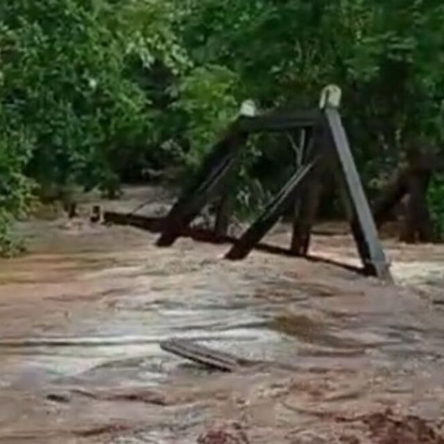 Enxurrada destrói ponte após rio transbordar em Corguinho