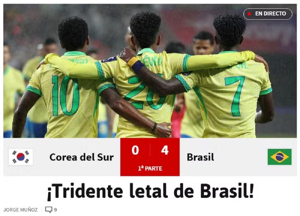 O destaque do jornal foi para Estêvão, Rodrygo e Vini Jr., autores dos gols do amistoso. O trio foi chamado de "letal" pelo As. A seleção brasileira volta a jogar na terça-feira, às 7h30, contra o Japão. (Com ge - Seul)