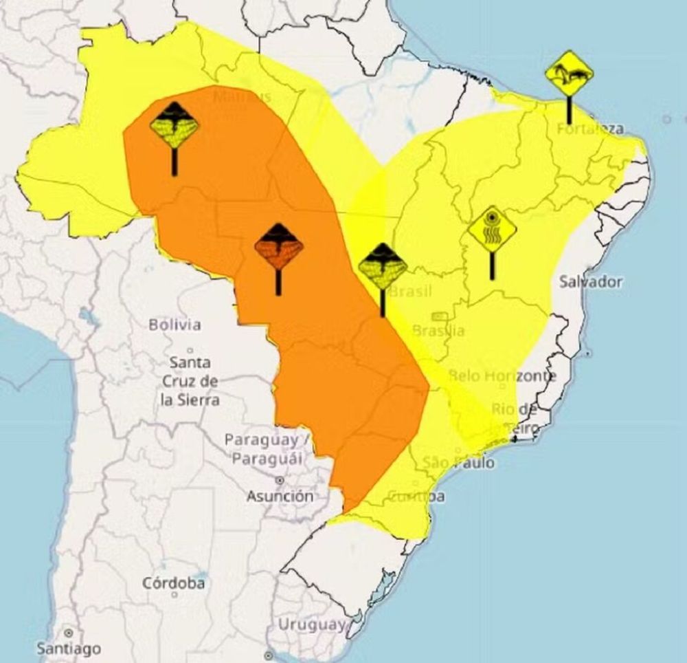 O comunicado abrange áreas nos Estados do Paraná, Santa Catarina, Minas Gerais, Mato Grosso, Goiás, Mato Grosso do Sul, São Paulo, Rondônia e Amazonas.