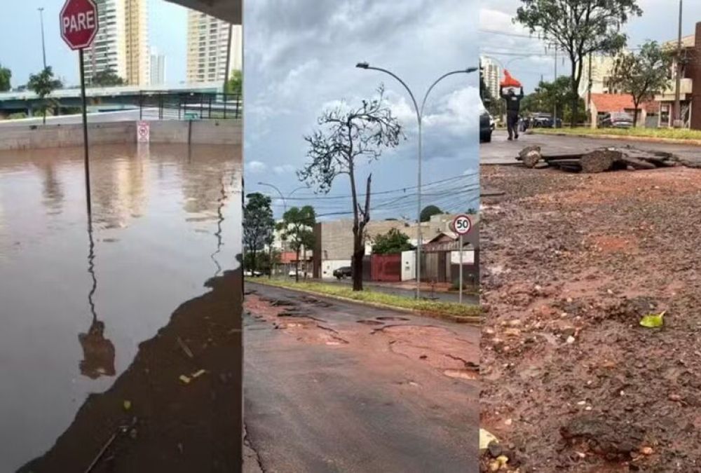 A forte chuva que atingiu Campo Grande na tarde de terça-feira (6) causou alagamentos, queda de árvores, danos à rede elétrica e destruição de trechos de vias em diferentes regiões da cidade.
