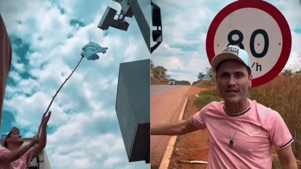 O senador Cleitinho Azevedo (Republicanos-MG) apareceu nas redes sociais cobrindo um radar em uma rodovia com uma camiseta.